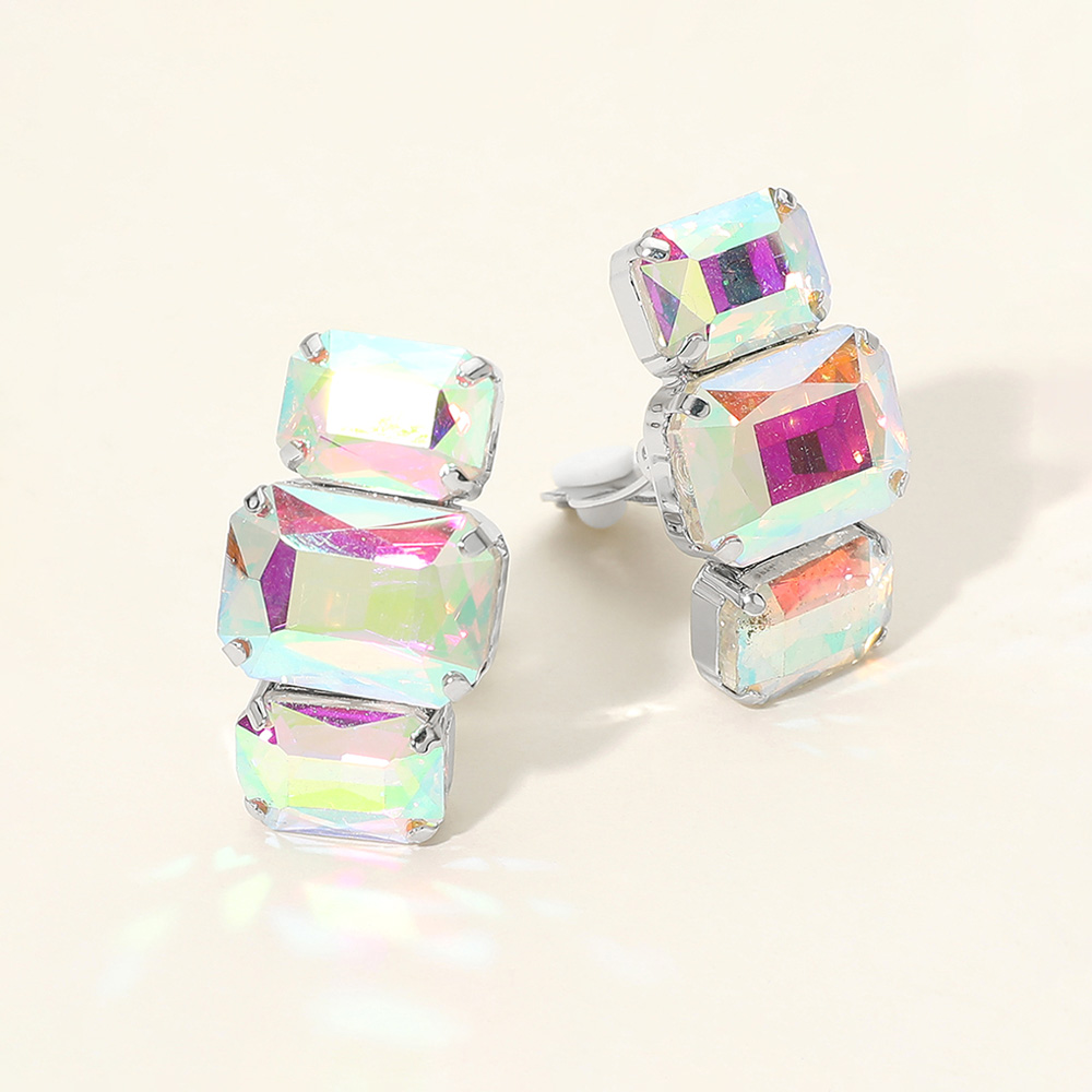 Triple Rectangular Faceted Stone Evening Clip On Earrings Triple Rectangular Faceted Stone Evening Clip On Earrings