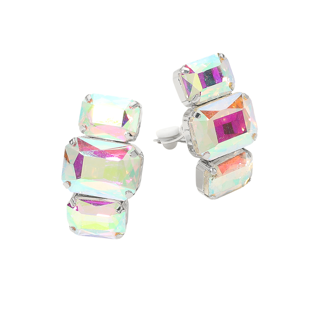 Triple Rectangular Faceted Stone Evening Clip On Earrings