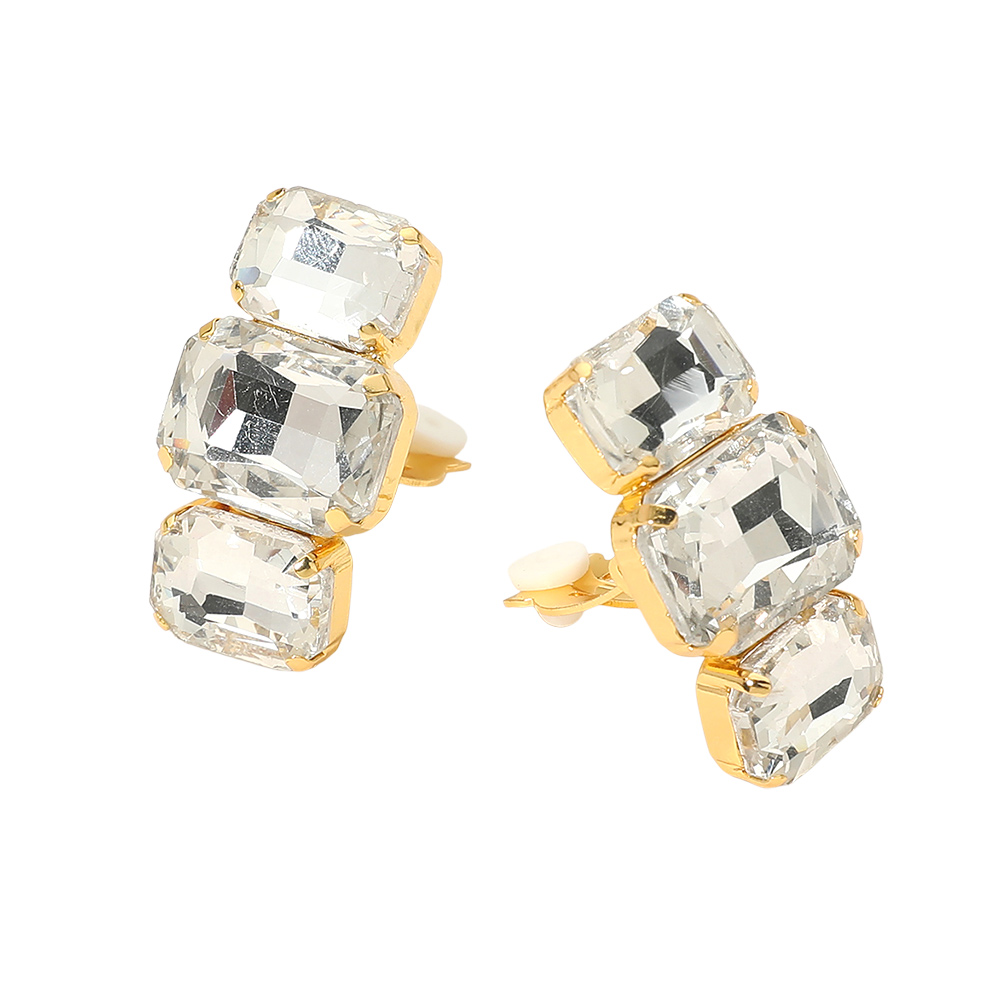 Triple Rectangular Faceted Stone Evening Clip On Earrings