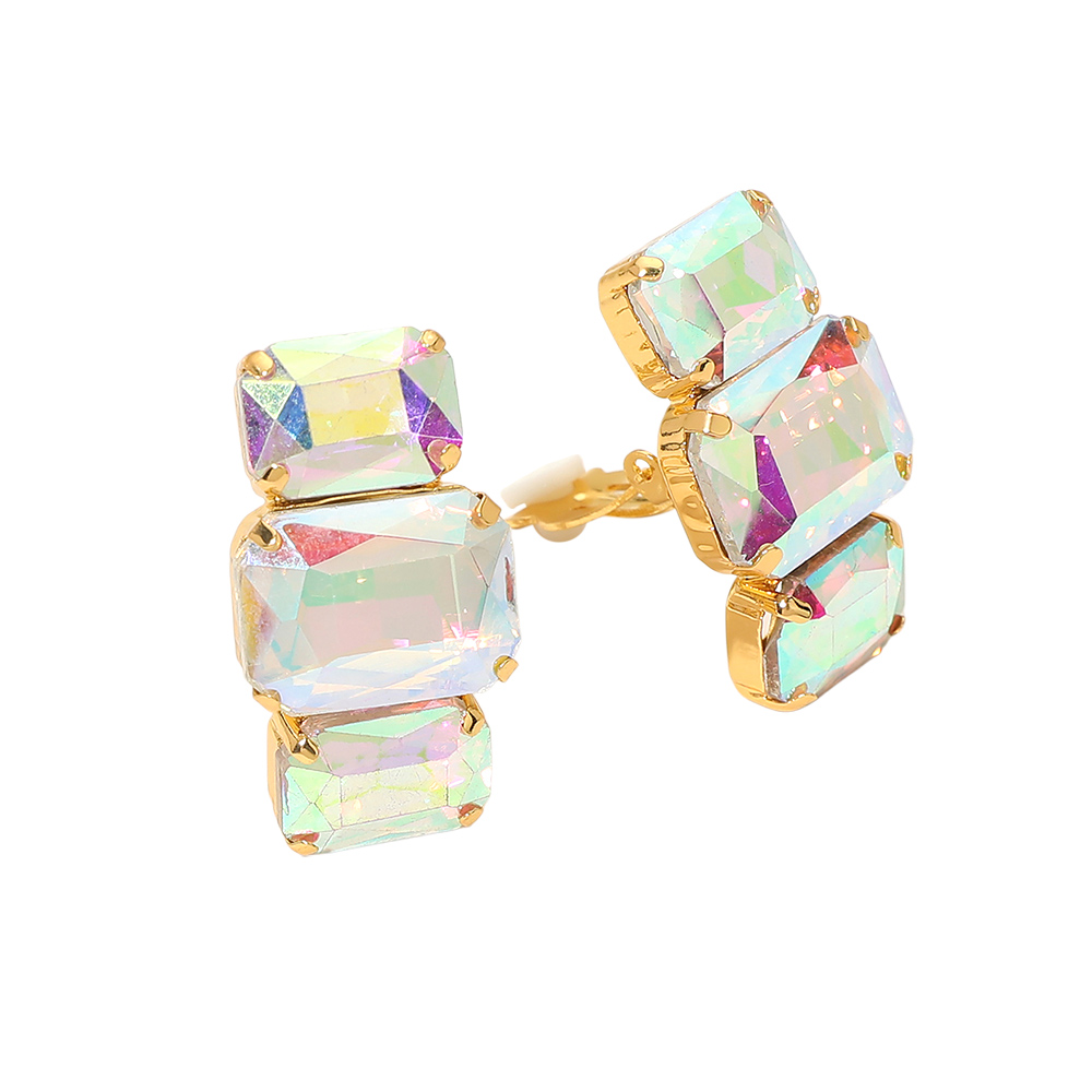 Triple Rectangular Faceted Stone Evening Clip On Earrings