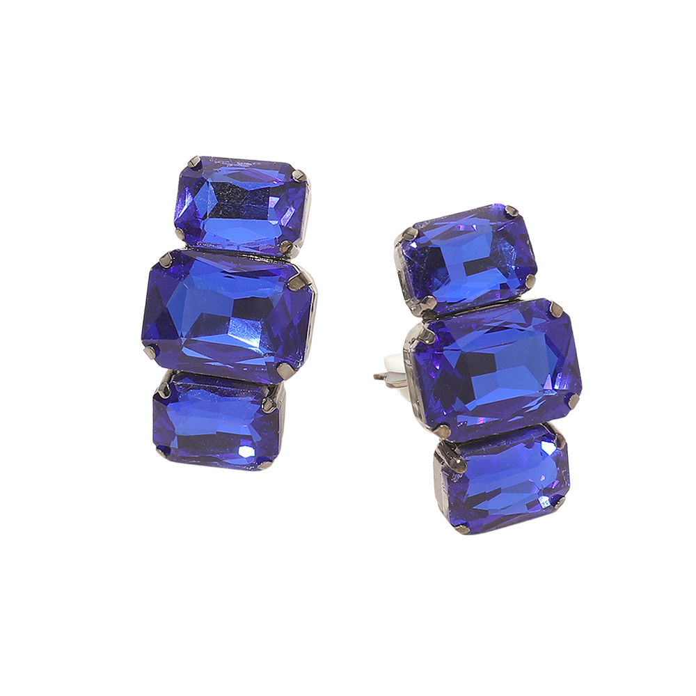 Details • Size : 0.75" X 1.25" • Clip On • Statement clip earrings designed with stacked geometric faceted stones that reflect light beautifully for a bold, eye-catching look. Perfect for dressing up everyday outfits or adding dramatic shine to evening wear, these clip earrings offer comfortable wear with a glamorous, modern silhouette that appeals to customers seeking standout accessories with elegant sparkle. • Lead and Nickel Compliant