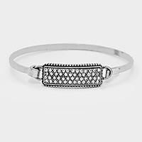Bold Swirl Resin Stone Hammered Metal Hinged Bangle Bracelet