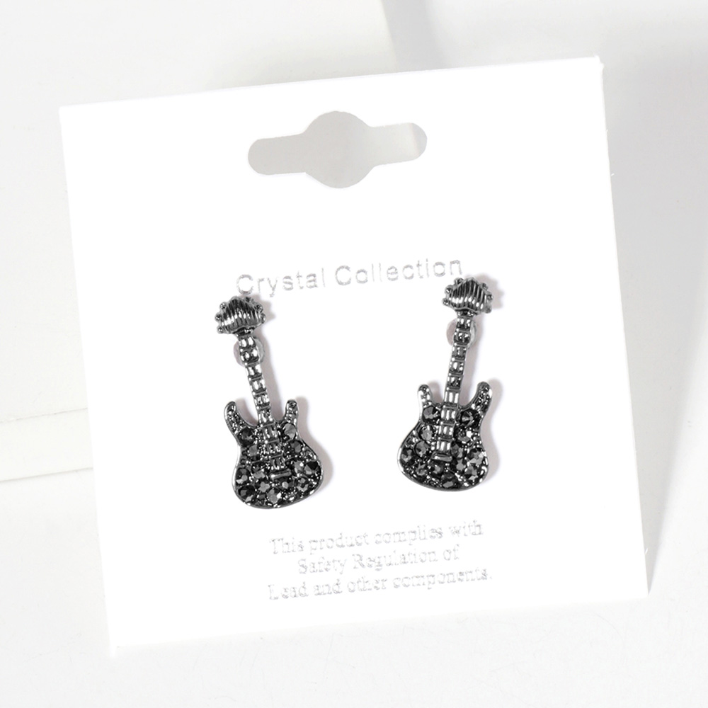 Crystal Stone Paved Enamel Mic Stud Earrings