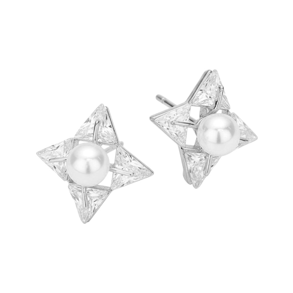 Pearl Centered Crystal CZ Stone Star Stud Earrings