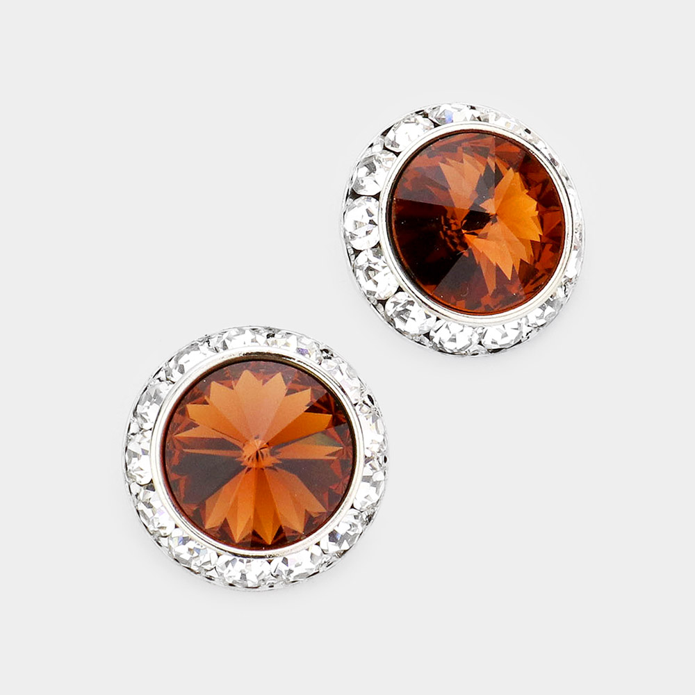 Rivoli Cut Genuine Crystal Round Stud Earrings
