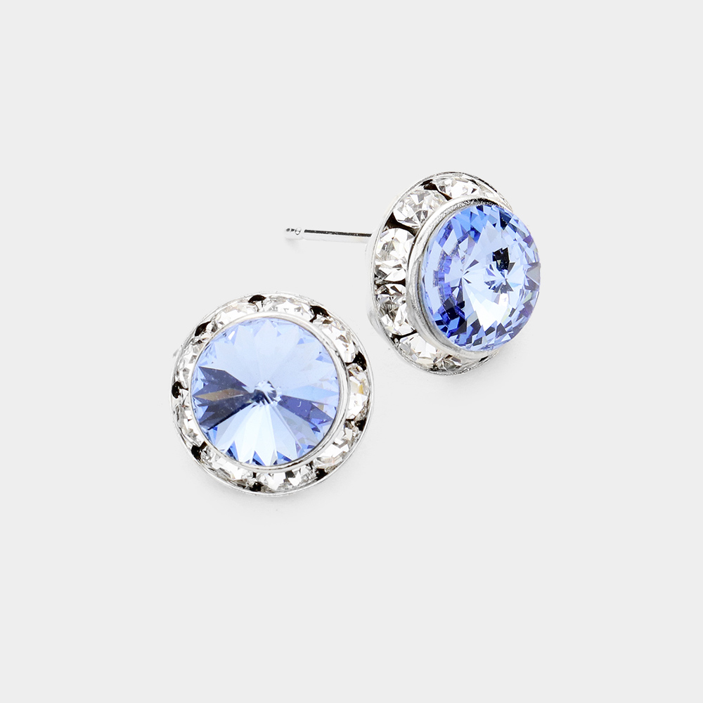 Rivoli Cut Genuine Crystal Round Stud Earrings