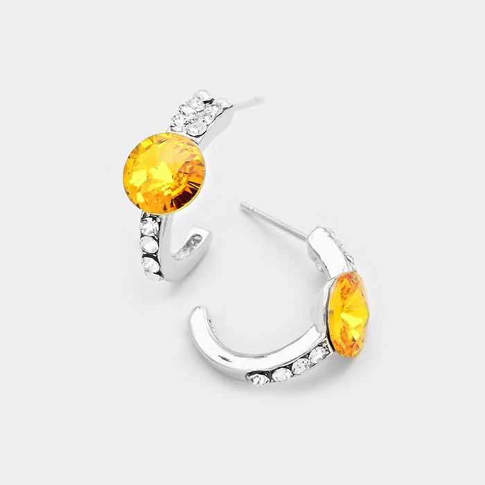 Round Cut Genuine Crystal Half Hoop Earrings