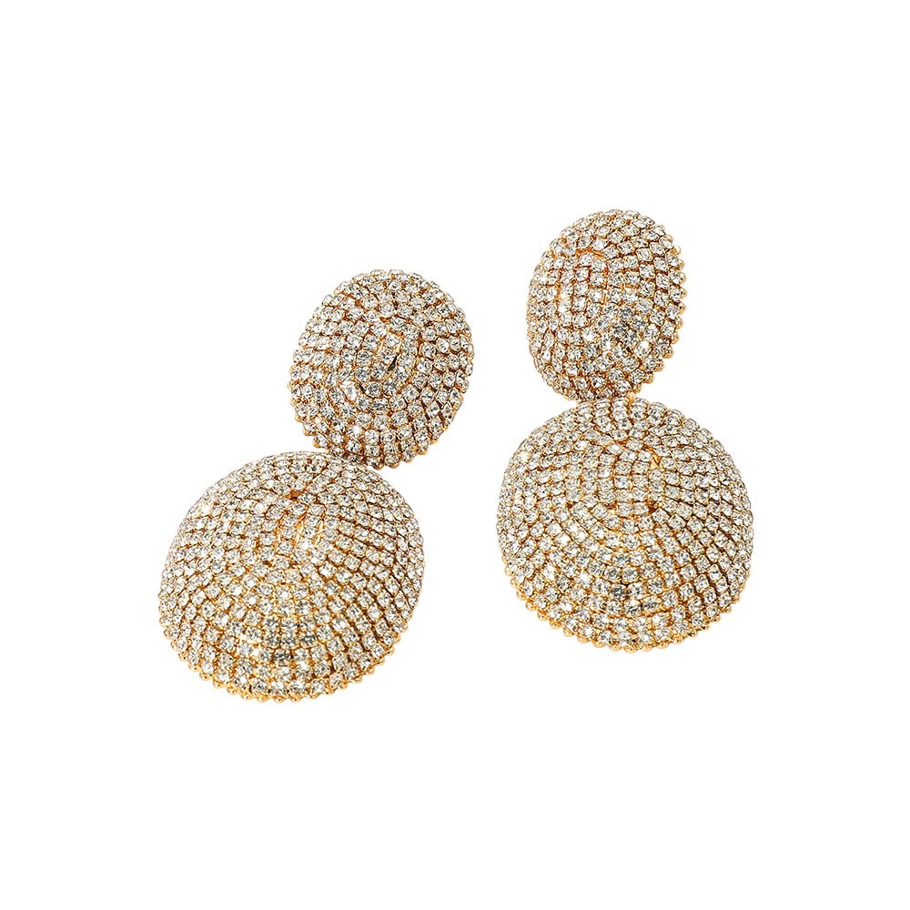 • Statement pavĂ© dome drop earrings designed with a layered rounded silhouette that delivers bold shine and eye-catching dimension. This elevated style adds instant glamour to evening looks, special events, and boutique collections, offering timeless appeal with a modern statement finish.