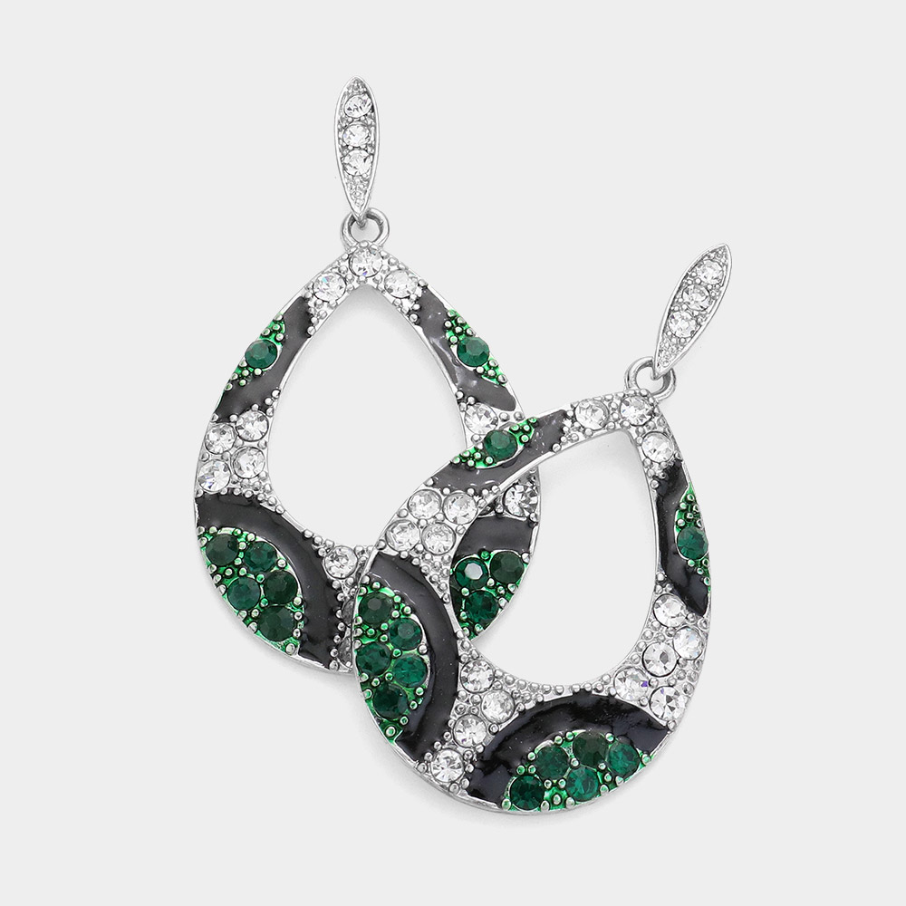 Teardrop Accented Marquise Stone Trimmed Dangle Evening Earrings