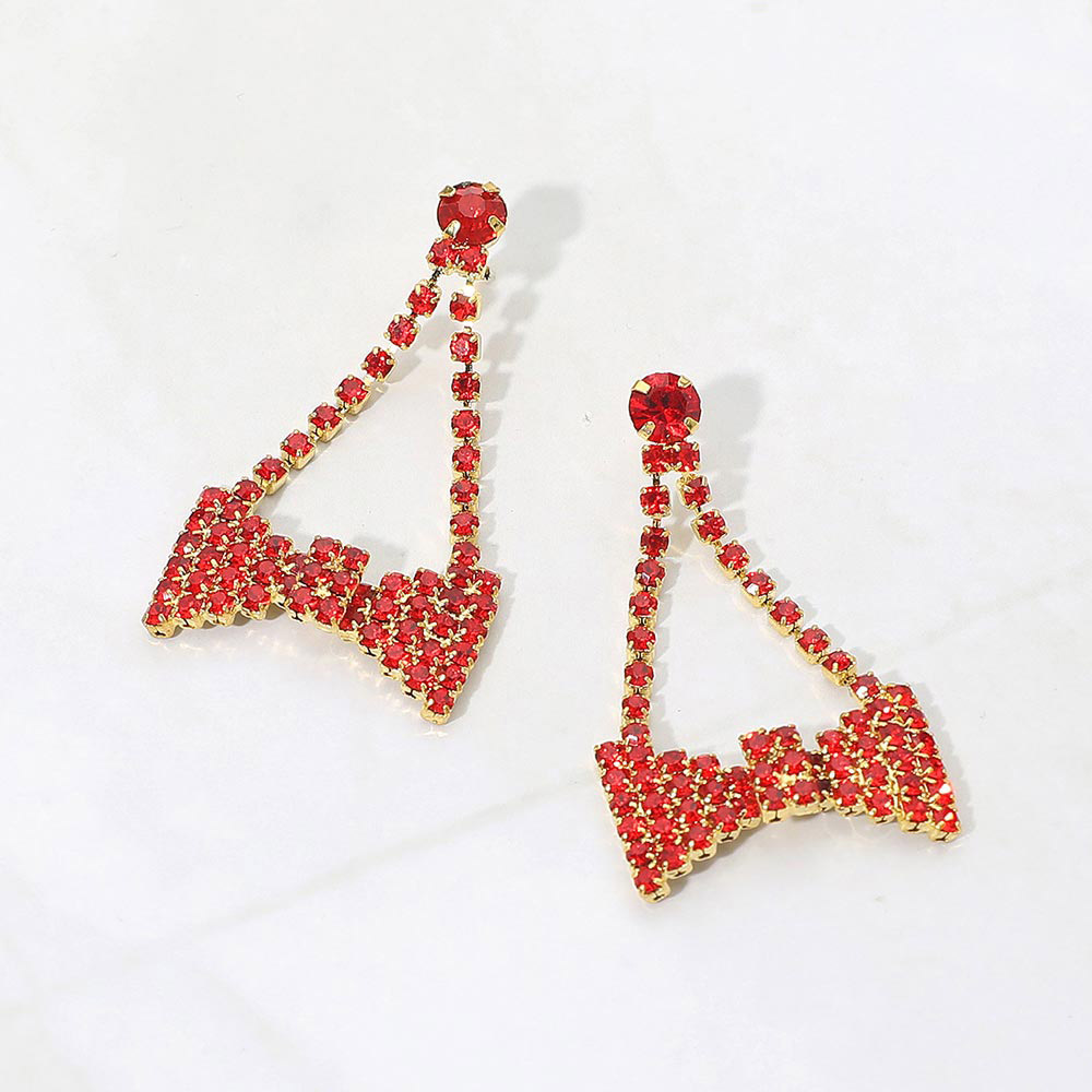 Details • Size : 0.9" X 1.75" • Post Back • Statement bow drop earrings designed with cascading sparkle and eye-catching movement. Perfect for party looks, holiday styling, performances, and boutique collections, these earrings add playful elegance and dramatic shine to any outfit while offering lightweight comfort and standout visual appeal for special occasions and trend-forward displays.