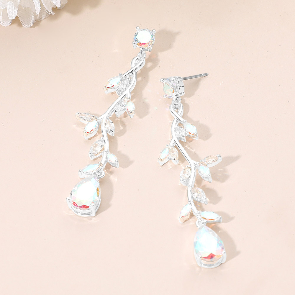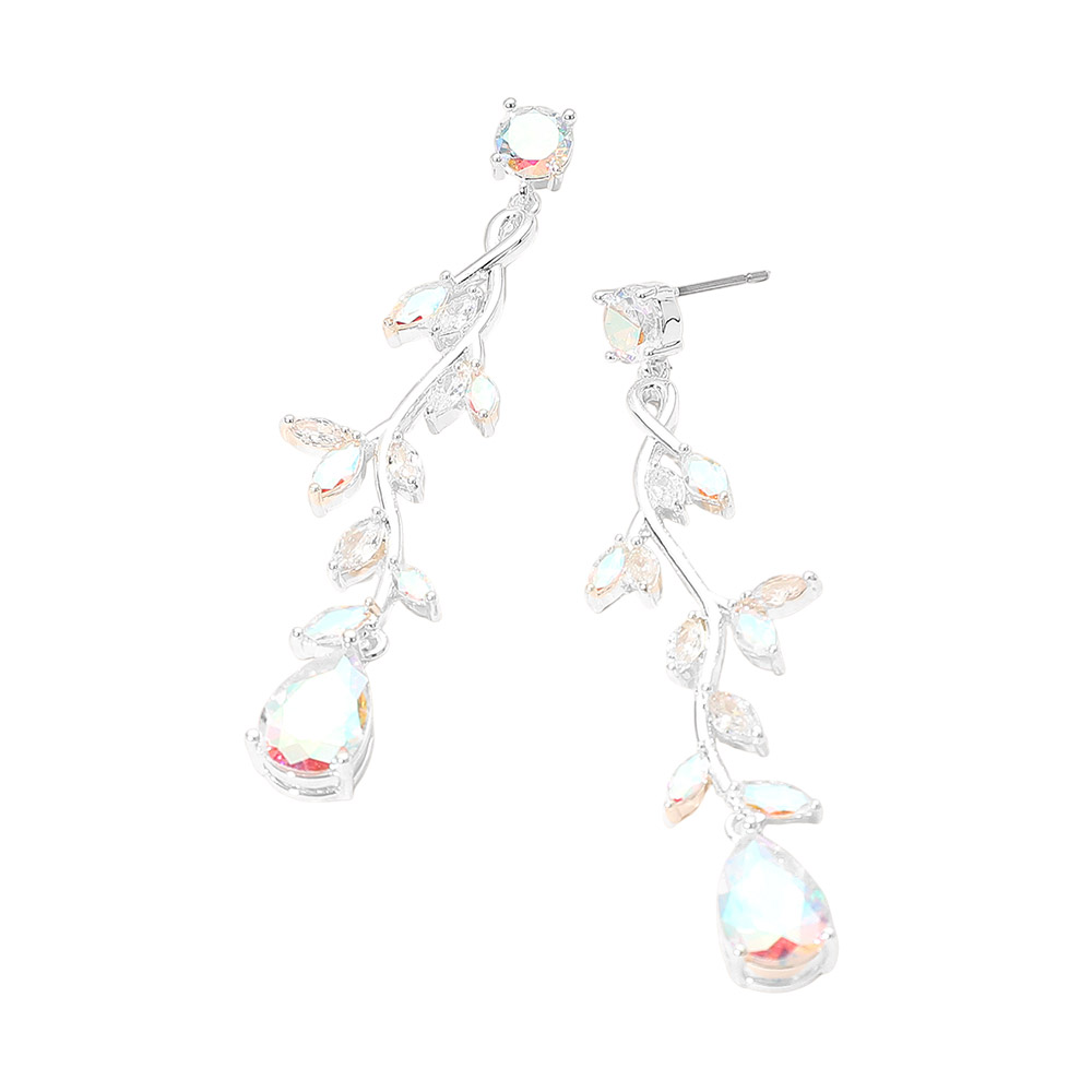 Details • Size : 0.7" X 2.5" • Post Back • These elegant drop earrings feature a delicate vine-inspired design adorned with sparkling cz crystal accents. Perfect for weddings, formal events, or special evenings, they offer a refined touch of glamour and grace that enhances any outfit with timeless sophistication and shimmer. • CZ Cubic Zirconia • Lead and Nickel Compliant