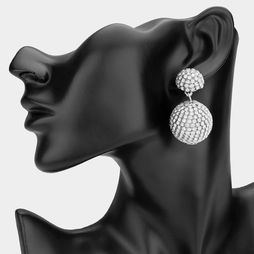 Double Rhinestone Ball Dangle Evening Earrings