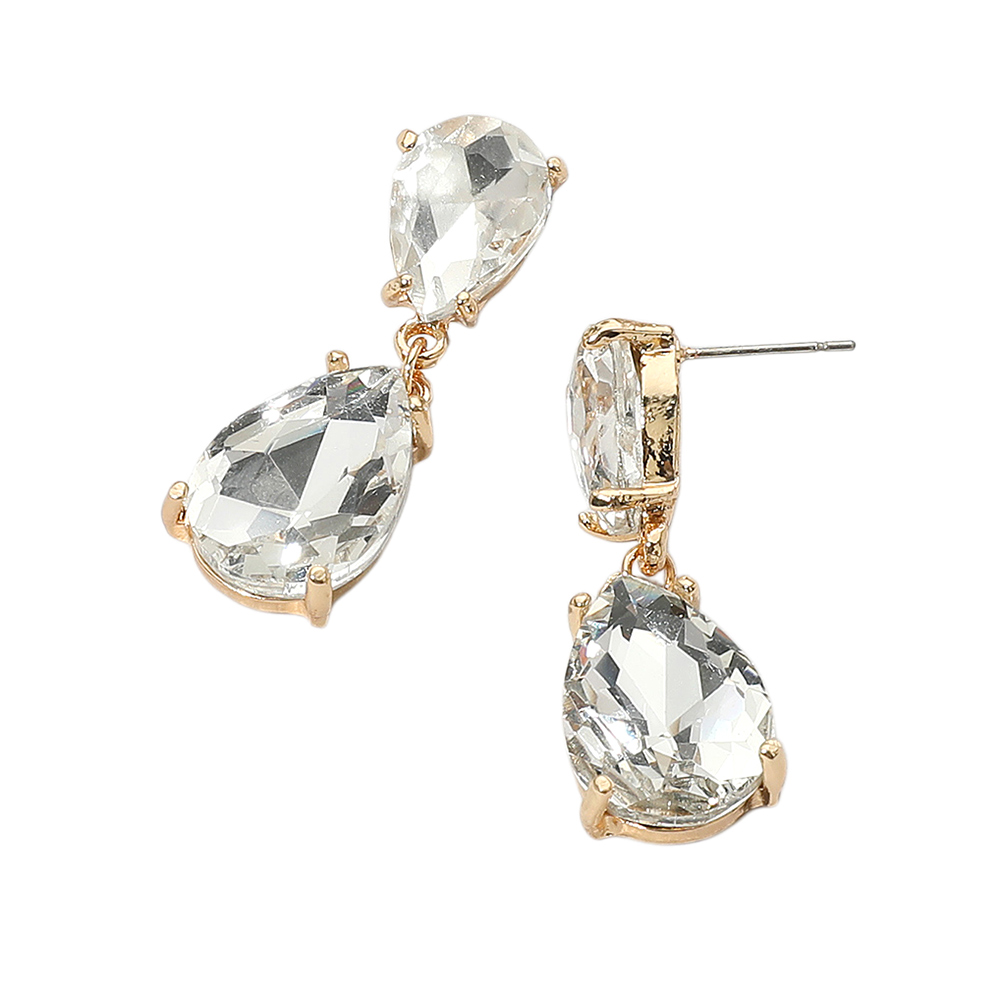 • Chic double teardrop dangle earrings with faceted stones that reflect light with every movement. A versatile accessory for both casual and dressy outfits, adding timeless charm to any style.