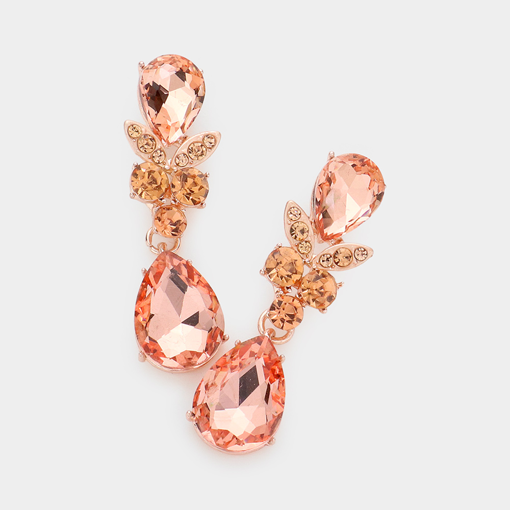 Double Teardrop Stone Accented Dangle Evening Earrings