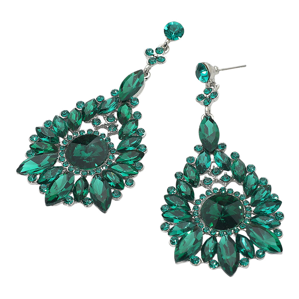 Details • Size : 1.6" X 3.7" • Post Back • Make an unforgettable impression with these statement teardrop crystal earrings. Designed with intricate faceted stones in a radiant arrangement, they capture light beautifully for a luxurious look—perfect for evening events, weddings, and glamorous nights out.