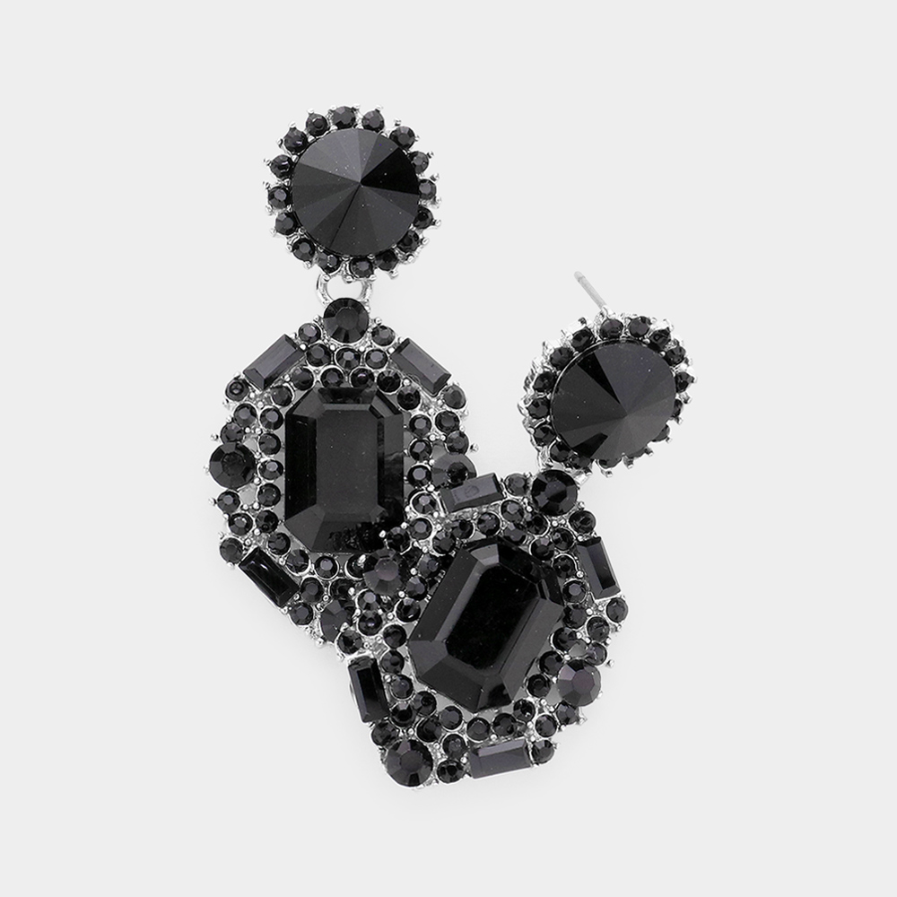Emerald Cut Crystal Evening Earrings