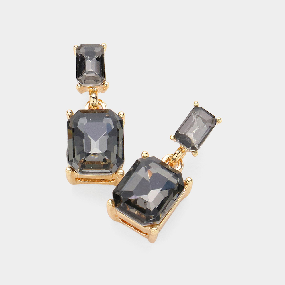 Emerald Cut CZ Stone Dangle Evening Earrings