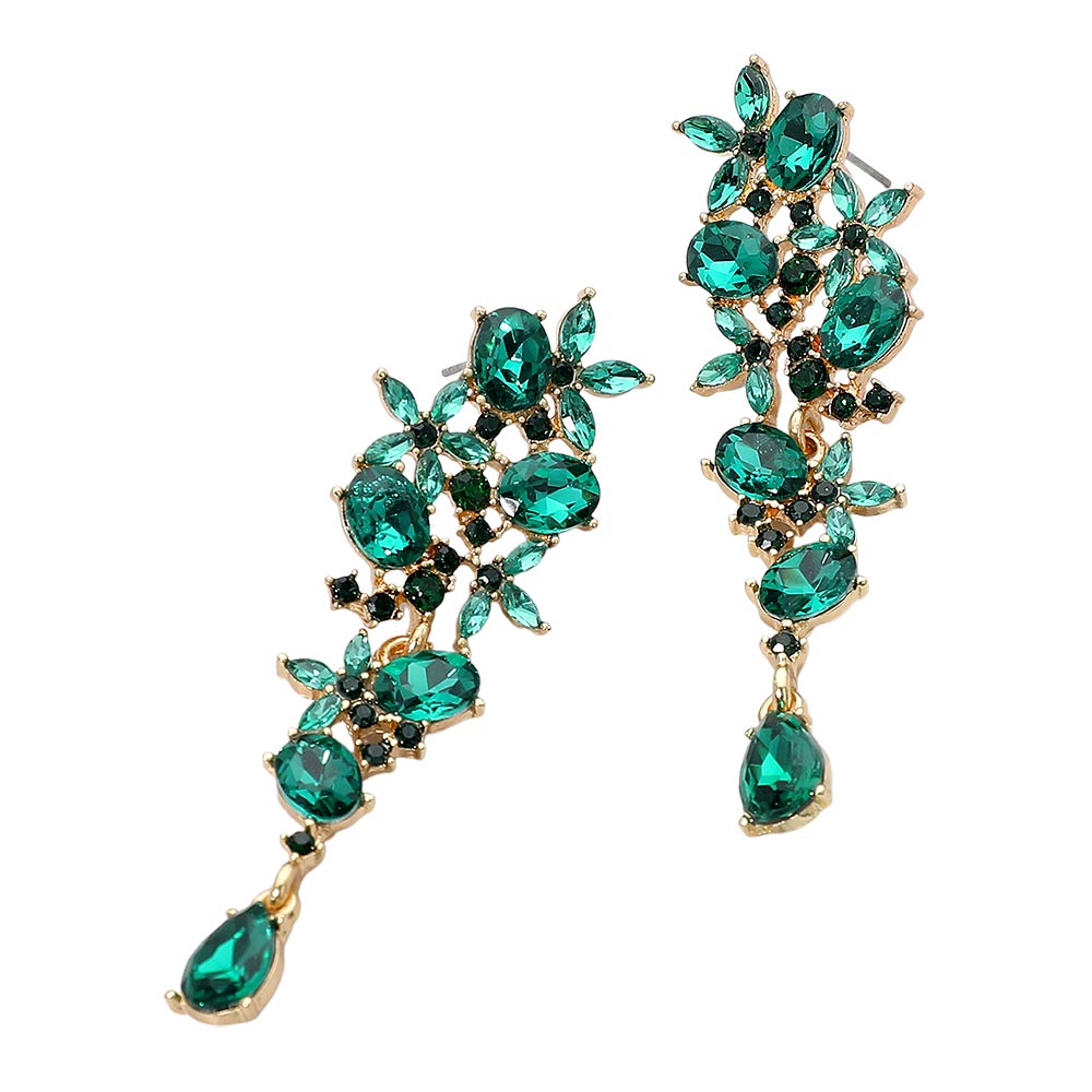 Floral Gem Cluster Drop Evening Earrings Floral Gem Cluster Drop Evening Earrings
