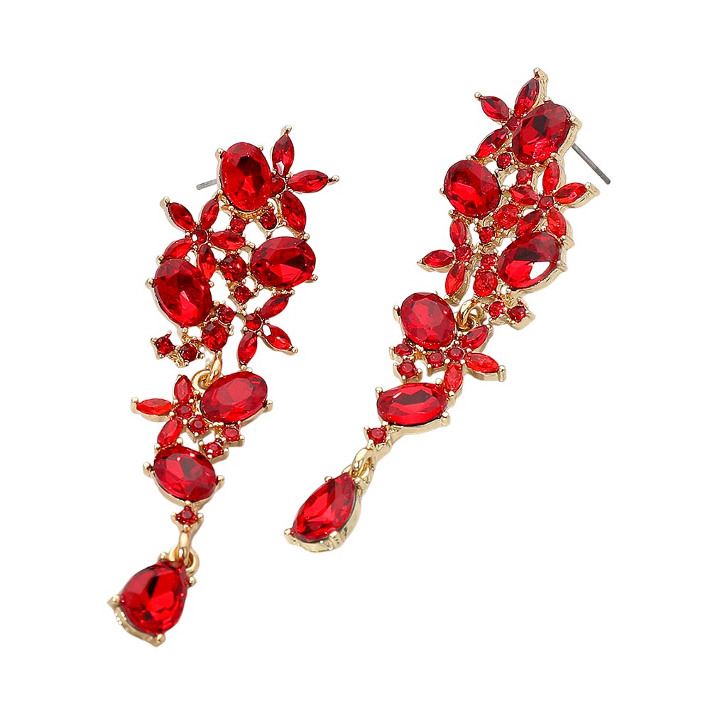 Details • Size : 0.8" X 2.7" • Post Back • These floral gem cluster drop earrings feature a graceful arrangement of marquise and oval-cut stones, creating a cascading botanical-inspired design. Perfect for evening wear or special occasions, they bring elegance and sparkle to any outfit with their intricate detailing and refined charm. • Lead and Nickel Compliant