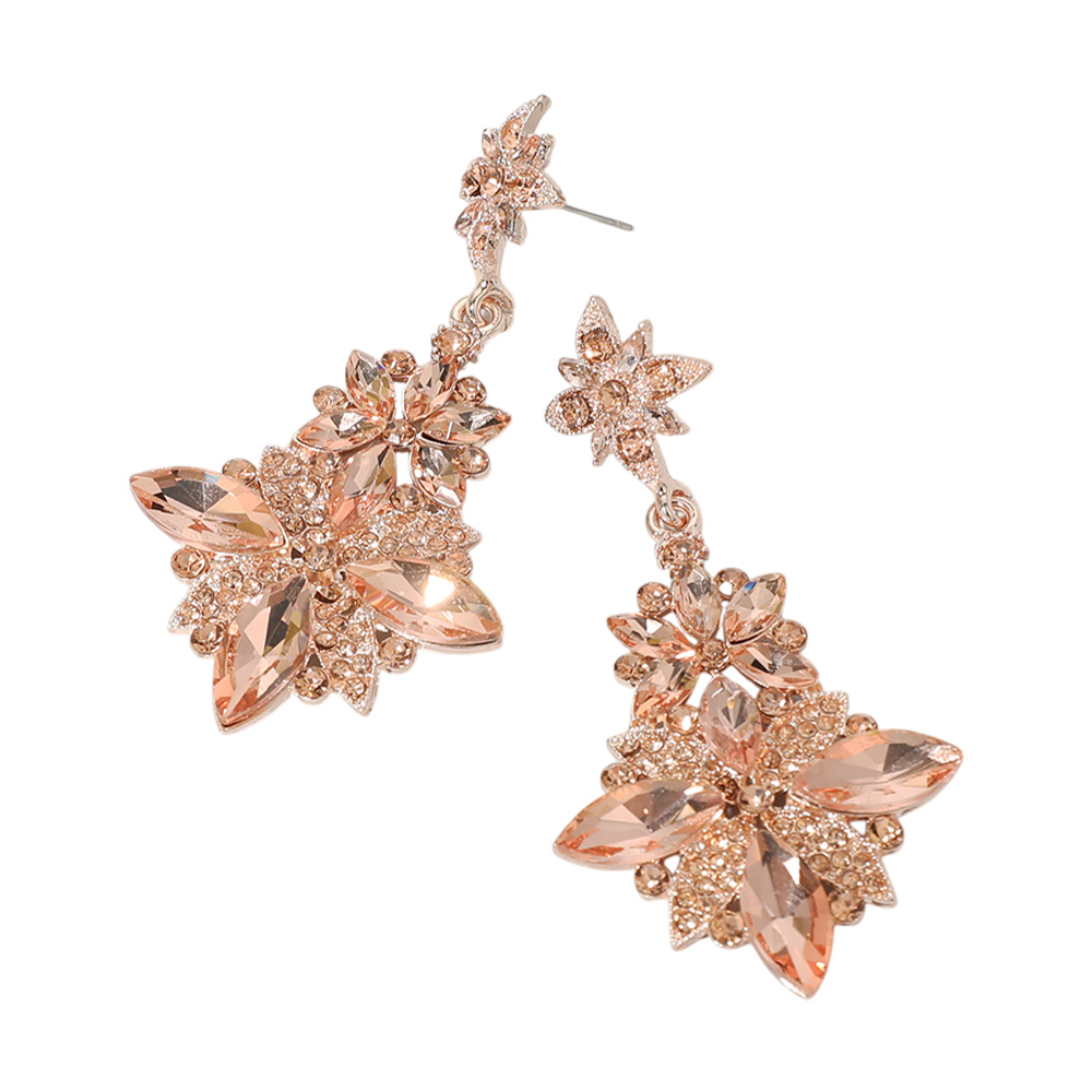 Floral Glass Stone Drop Evening Earrings