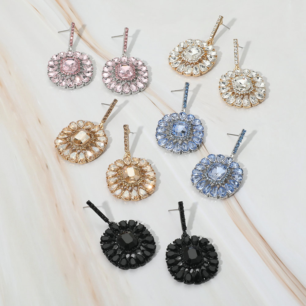 Details • Size : 1" X 1.8" • Post Back • Make a statement with round crystal drop earrings featuring intricate gemstone detailing. Perfect for parties, weddings, or adding glamour to any evening outfit. Lightweight and eye-catching design. • Lead and Nickel Compliant