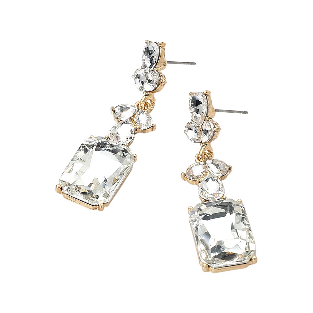 • These geometric drop statement earrings feature a bold, faceted design with a cascading arrangement of gem-like shapes. Perfect for adding a touch of sophistication to evening looks, they combine modern elegance with timeless glamour—ideal for special occasions or chic events.