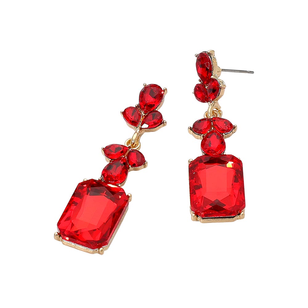 Details • Size : 0.5" X 2" • Post Back • These geometric drop statement earrings feature a bold, faceted design with a cascading arrangement of gem-like shapes. Perfect for adding a touch of sophistication to evening looks, they combine modern elegance with timeless glamour—ideal for special occasions or chic events. • Lead and Nickel Compliant