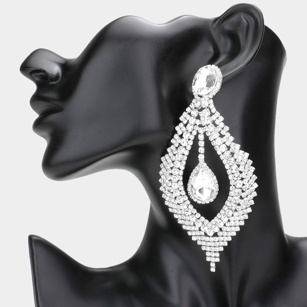 Rhinestone Paved Star Pointed Fringe Evening Earrings