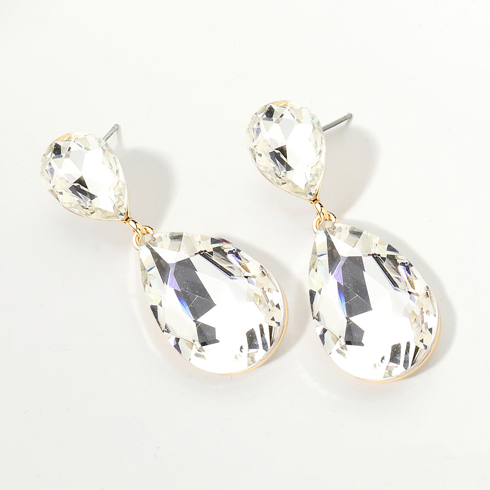 • Glamorous faceted teardrop dangle earrings featuring a radiant crystal-cut design that catches the light beautifully. Lightweight and sophisticated, these statement earrings elevate evening outfits, weddings, or special occasions with timeless elegance and refined sparkle.