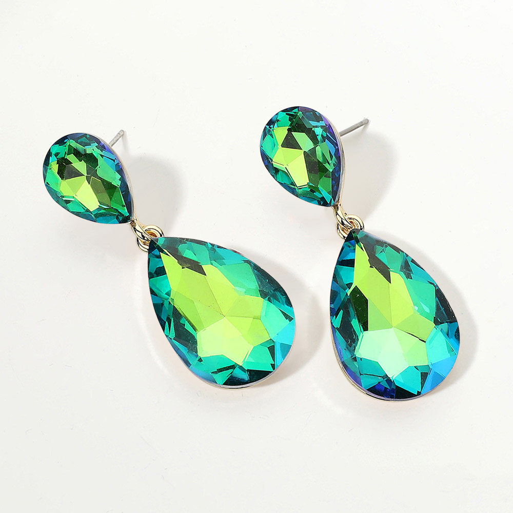 • Glamorous faceted teardrop dangle earrings featuring a radiant crystal-cut design that catches the light beautifully. Lightweight and sophisticated, these statement earrings elevate evening outfits, weddings, or special occasions with timeless elegance and refined sparkle.