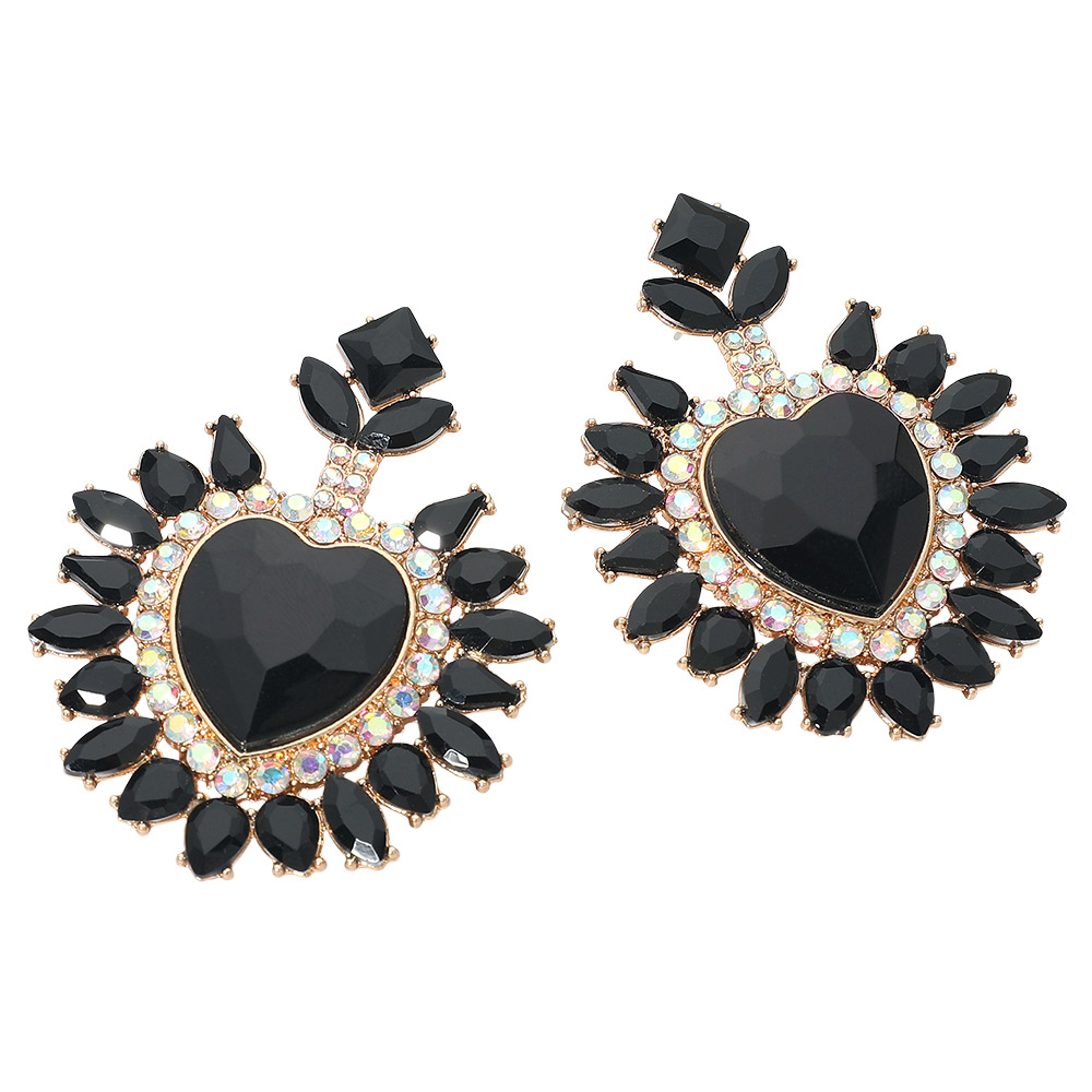 • Heart crystal statement drop earrings featuring a bold faceted center and radiant surrounding details. Designed to catch the light from every angle, this dramatic yet elegant style is perfect for special occasions, evening wear, and boutique collections seeking standout, romantic jewelry with strong visual impact.