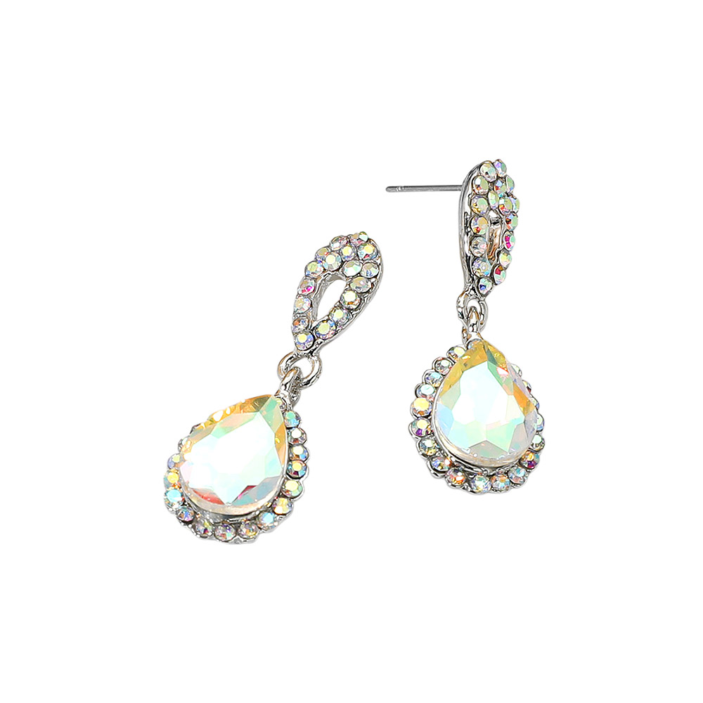 Iridescent Teardrop Crystal Dangle Earrings
