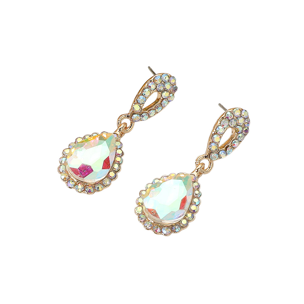 Iridescent Teardrop Crystal Dangle Earrings