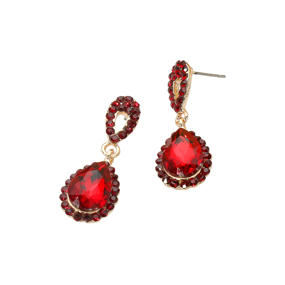 • Make a dazzling entrance with these elegant Teardrop Crystal Dangle Earrings. Each earring features a brilliant, large pear-shaped stone with an iridescent, rainbow-like shimmer, suspended beneath an oval link paved with smaller, sparkling gems. The highly faceted stones catch and reflect light from every angle, creating a spectacular glow. These statement earrings are perfect for bridal jewelry, proms, galas, or any formal event where you want to add exceptional sparkle and sophistication.