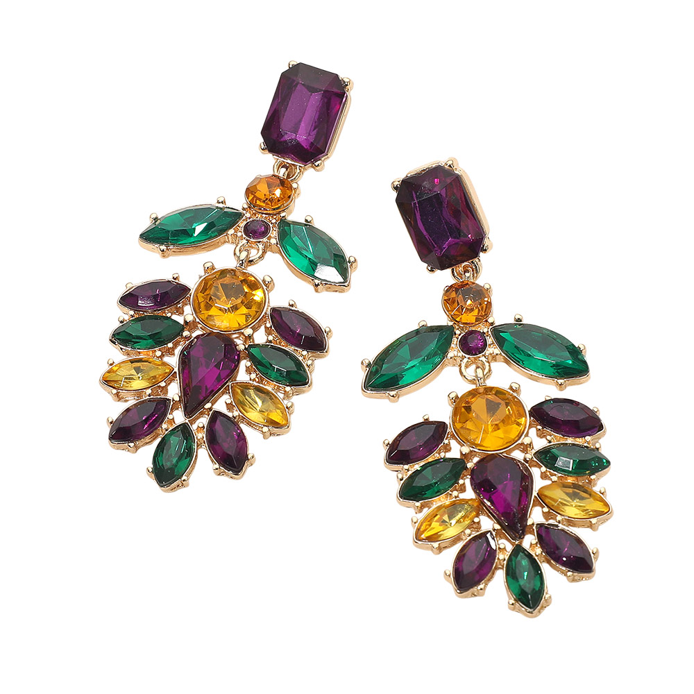 Mardi Gras Marquise Stone Cluster Chandelier Drop Evening Earrings