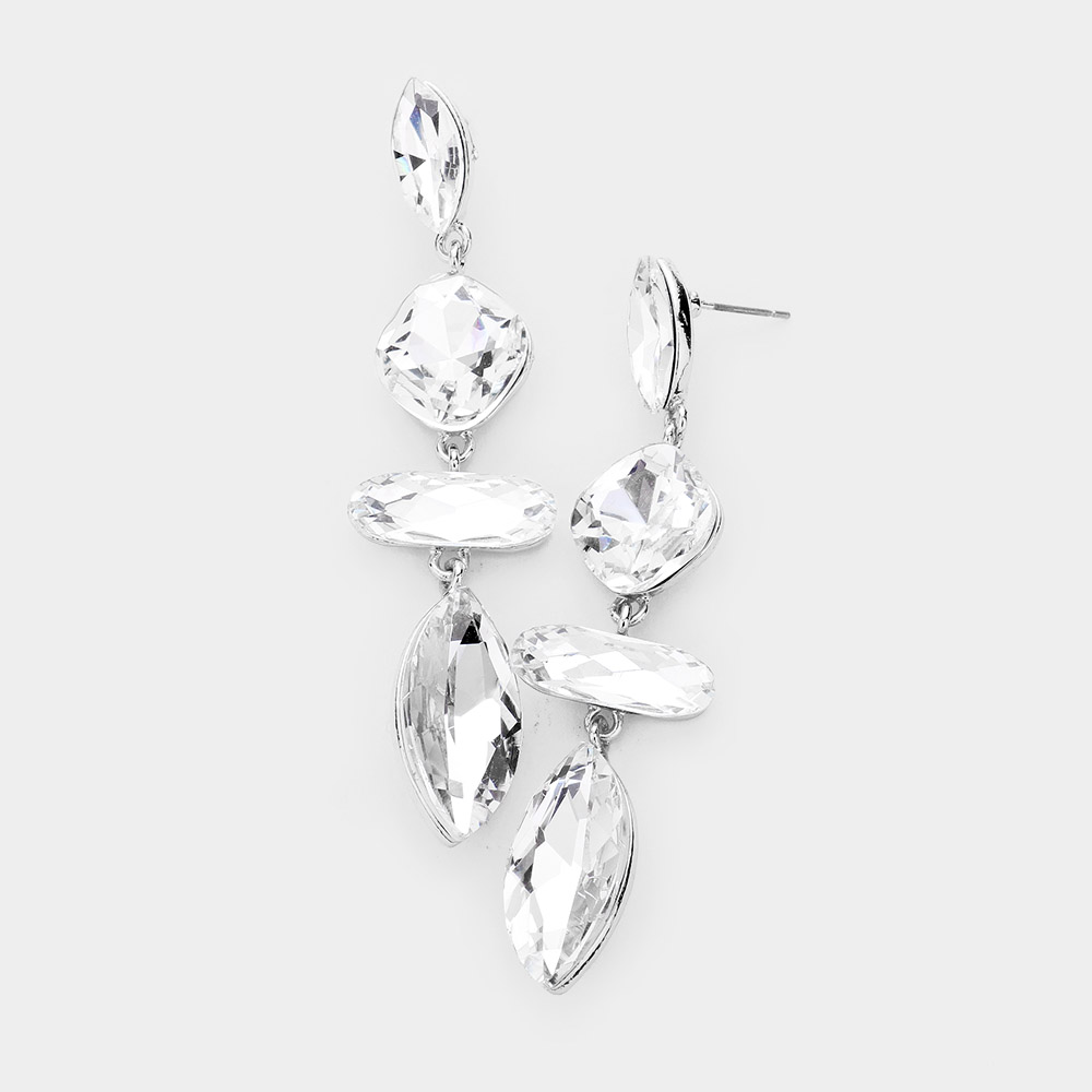 Floral Marquise Teardrop Stone Cluster Accent Dangle Evening Earrings