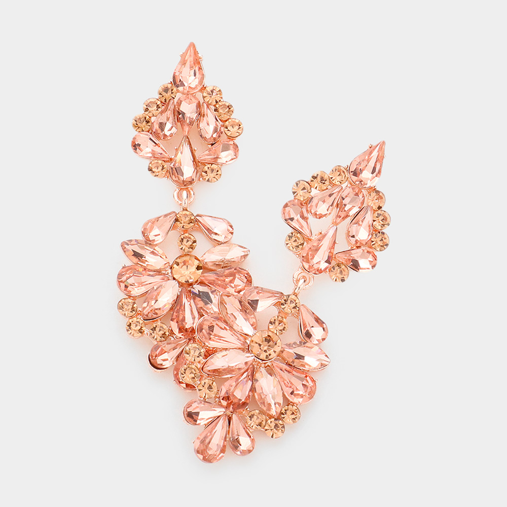 Teardrop Stone Cluster Embellished Dangle Evening Earrings