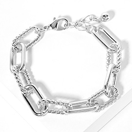 Circle Natural Stone Accented Burnished Metal Cuff Bracelet