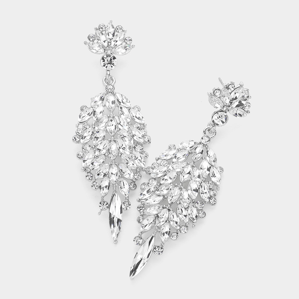 Marquise Stone Cluster Embellished Chandelier Dangle Evening Earrings