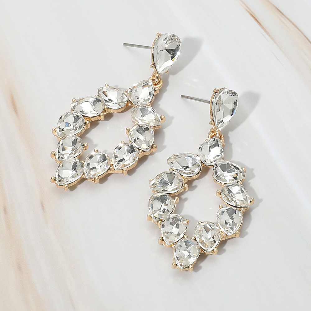 Details • Size : 1" X 2" • Post Back • Elevate your style with teardrop-shaped crystal dangle earrings. Perfect for weddings, parties, or formal events. Sparkling design adds timeless elegance to any outfit. • Lead and Nickel Compliant