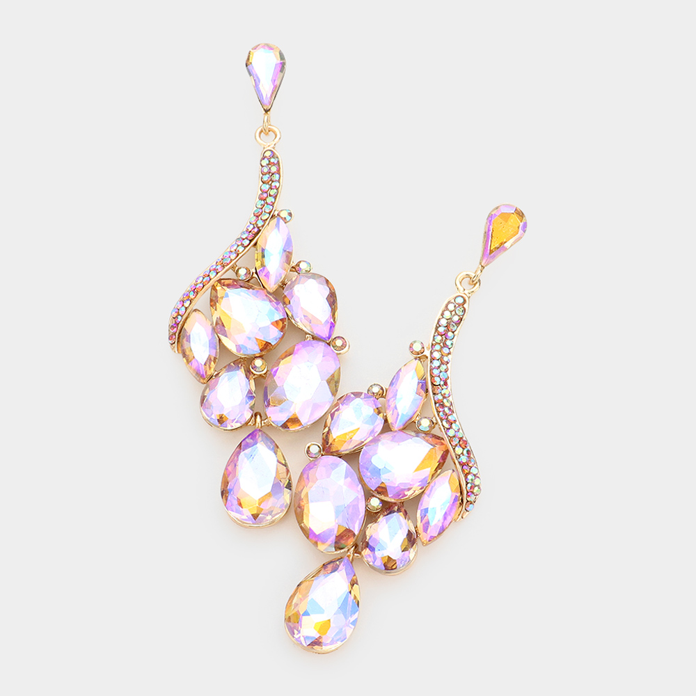 Marquise Stone Cluster Open Teardrop Dangle Evening Earrings