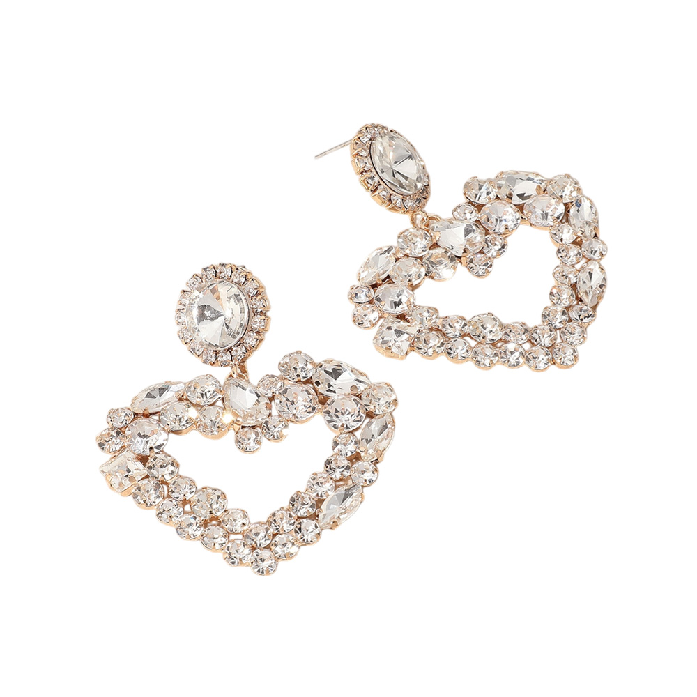 Multi Stone Cluster Open Heart Dangle Evening Earrings