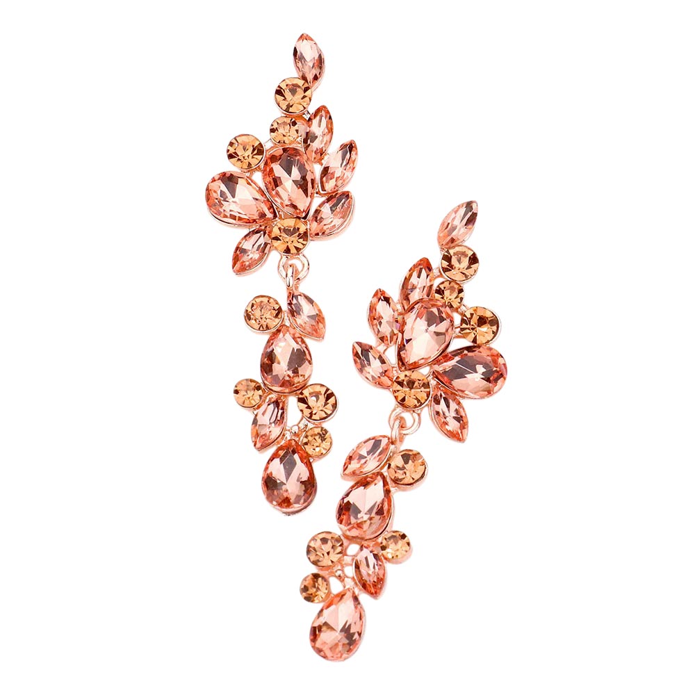 Chunky Pear Crystal Floral Evening Drop Earrings