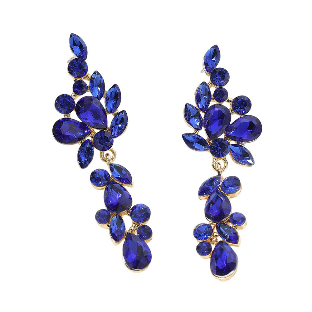 Multi Stone Cluster Vine Dangle Evening Earrings Multi Stone Cluster Vine Dangle Evening Earrings