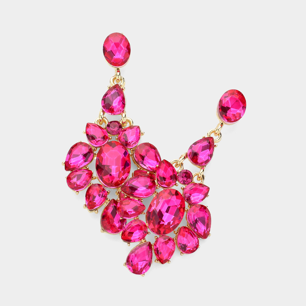 Oval Teardrop Stone Cluster Evening Earrings
