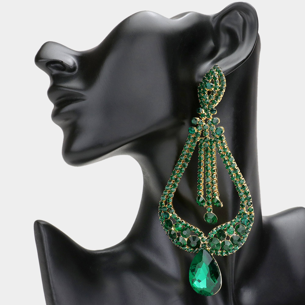 Oversized Pave Glass Teardrop Chandelier Evening Earrings