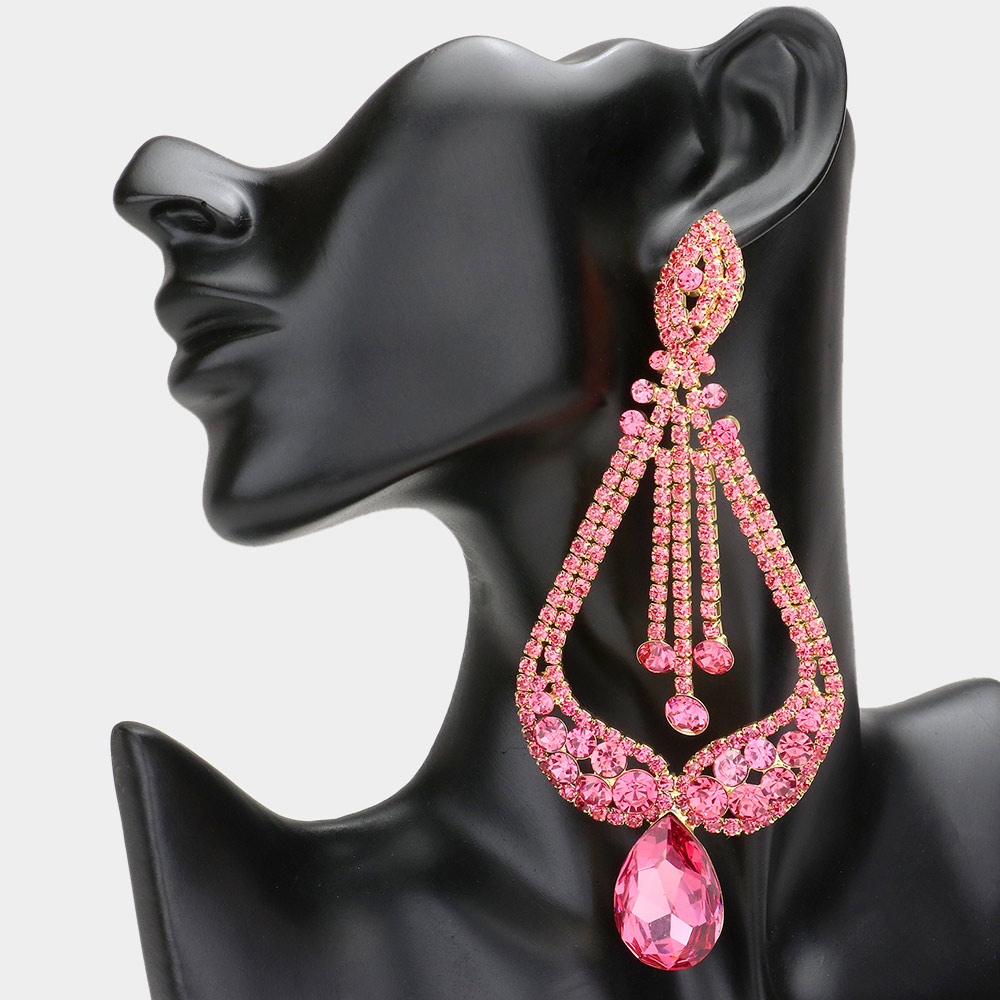 Oversized Pave Glass Teardrop Chandelier Evening Earrings