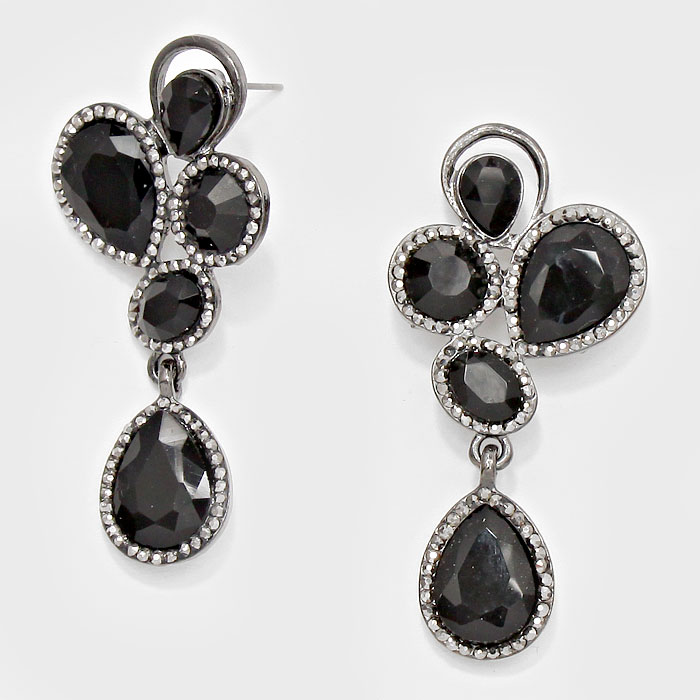 Petal Teardrop Crystal Rhinestone Dangle Evening Earrings