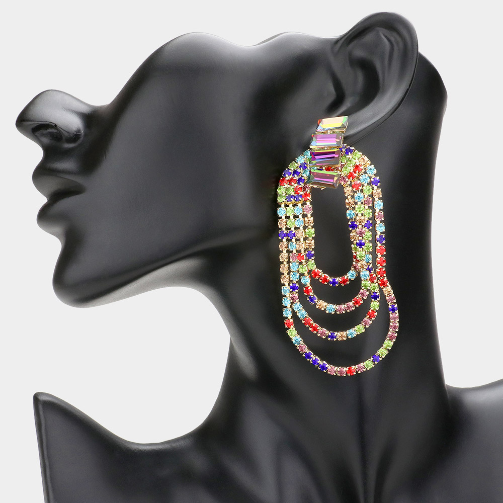 Rectangle Stone Accented Draped Rhinestone Dangle Evening Earrings
