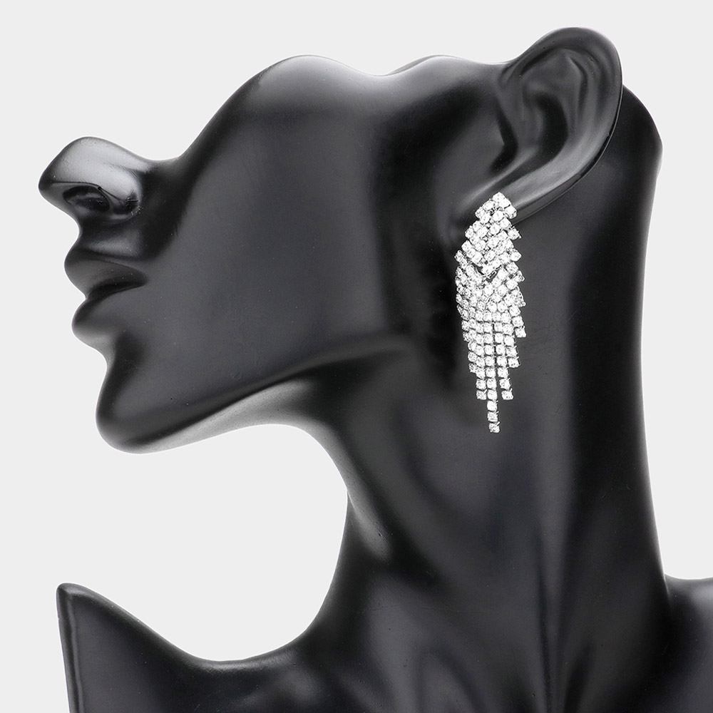 CZ Emerald Cut Stone Dangle Evening Earrings